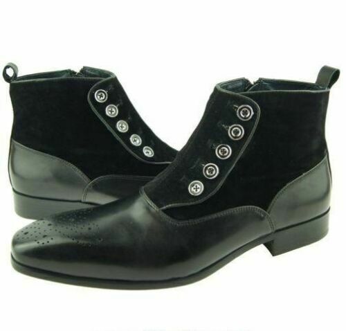 Handmade Men black Formal Boot, Men Button Up Boot, Suede and leather Ankle Boot