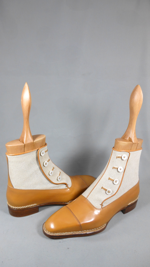 Tan White Button High Ankle Party Wear Stylish Handmade Cap Toe Men Boots