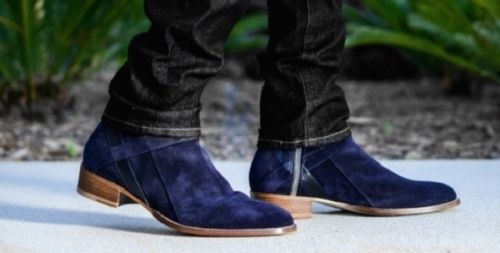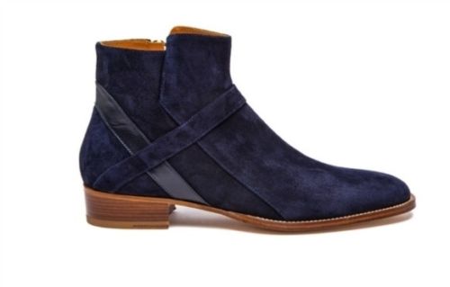 Handmade Men's navy blue Jodhpurs boot, Men side zipper ankle boot, Men's boot