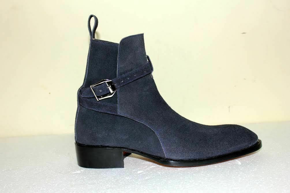 Men's Blue Handmade Suede leather Jodhpurs Ankle Boot Tan Ankle High Buckle Boot