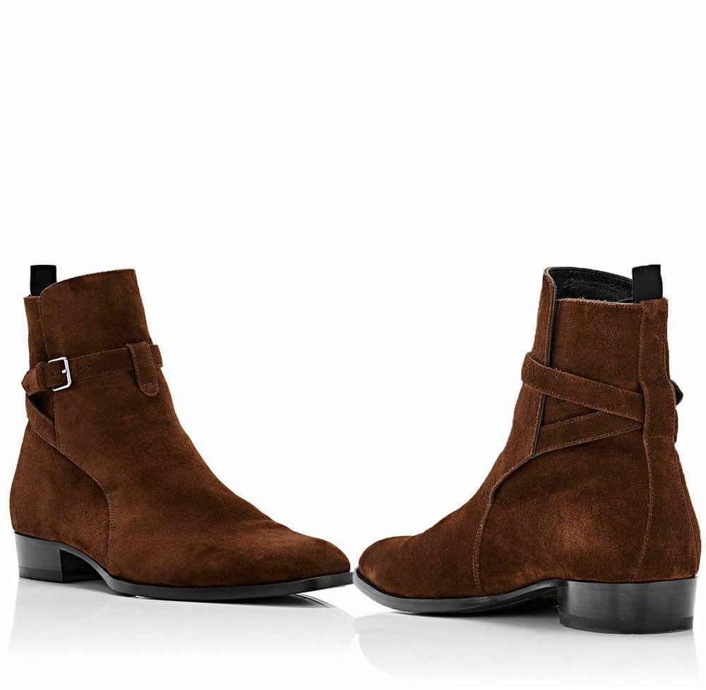 Men's Handmade Jodhpurs Ankle High Leather Boots Buckle Mens Suede Leather Shoes