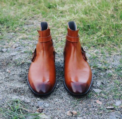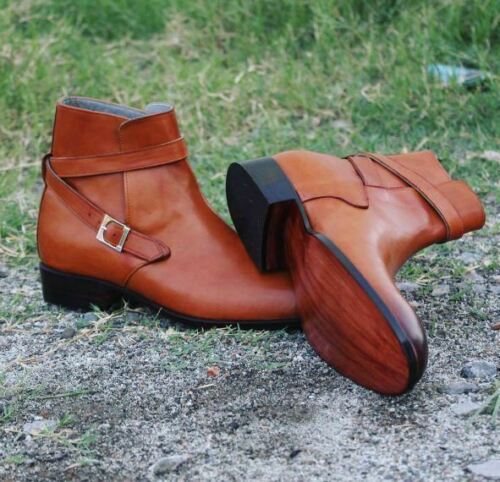 Handmade Men Tan Brown Jodhpurs Ankle Boot, Men Tan Color Ankle Casual Boot