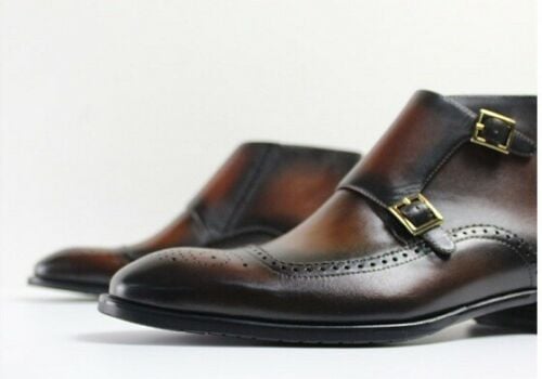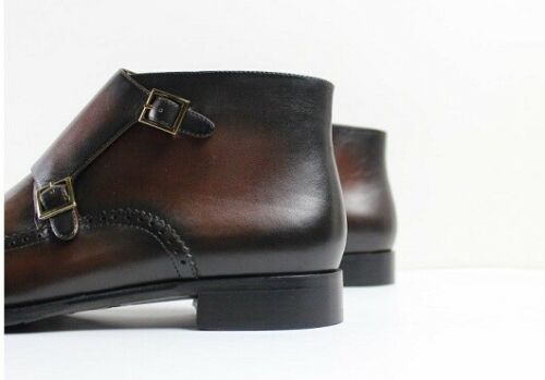 Handmade Men Brogue Double Monk Chukka Boots, New Men Leather Chukka Boots