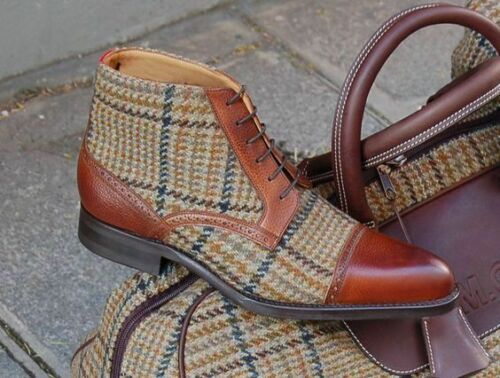 Men's Bespoke Spectator Shoes Cap Toe Oxford Hand Stitched Leather & Tweed Shoes