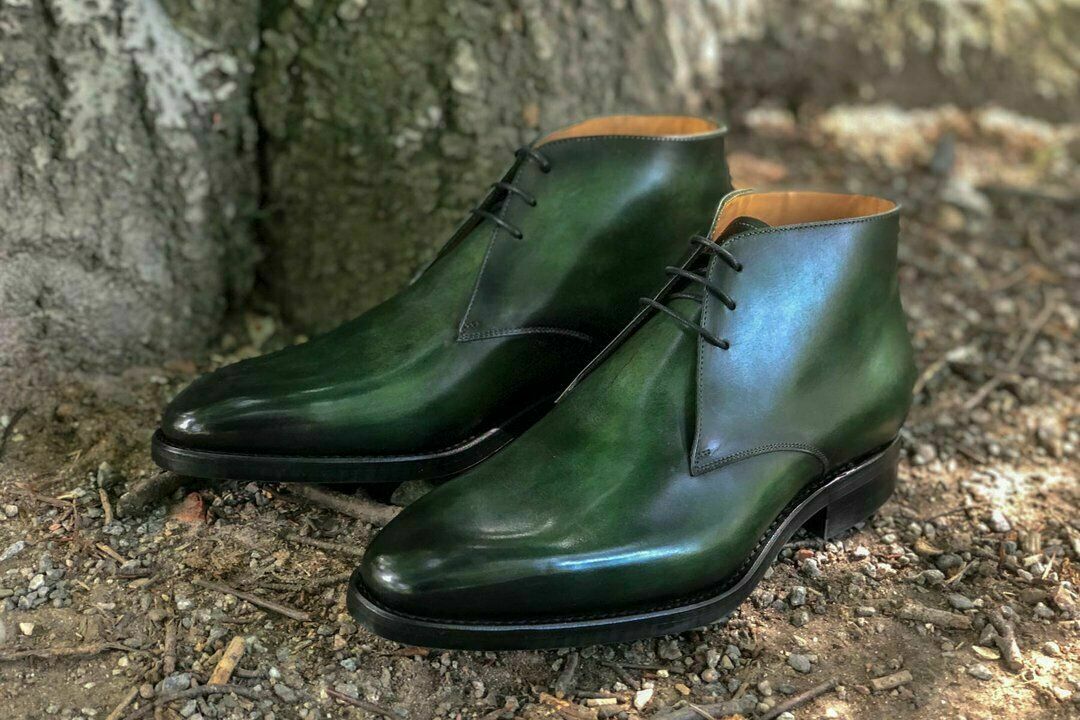 Handmade Men's green genuine leather Chukka boots,Men dress leather Chukka boot
