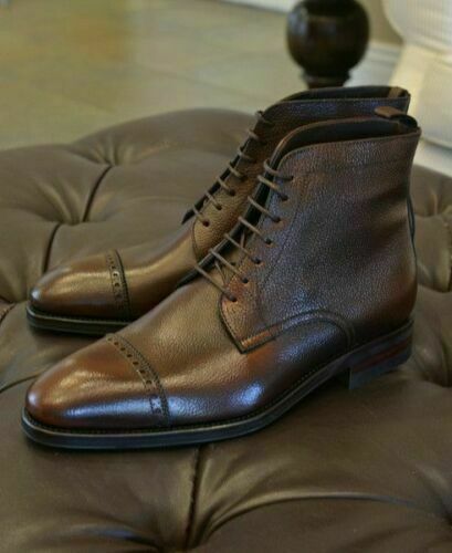 Handmade Men's Brown Leather Chukka Boots Men's Brown Cap Toe Ankle High Boots