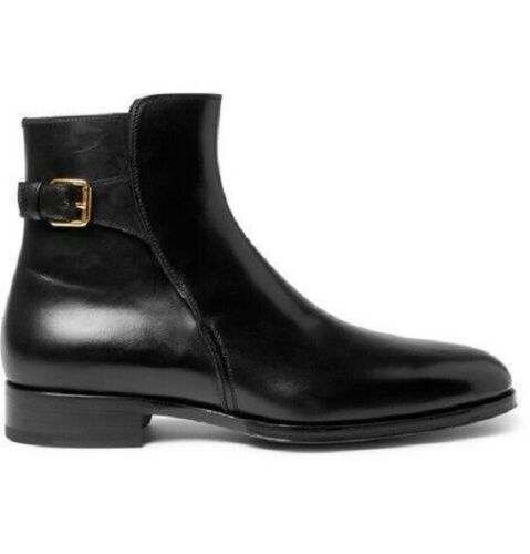 Handmade Leather Jodhpurs handmade round buckle black color men's boots