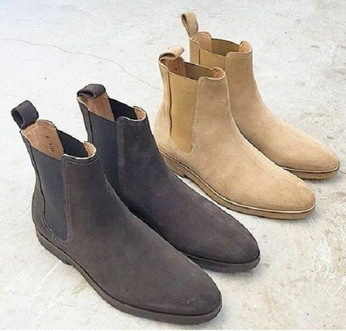 Handmade Men's Grey color Suede Chelsea boots, Beige CREPE SOLE 2 PAIR HOT SALE