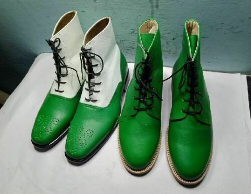 Handmade Men Green leather ankle boots, Men's White ankle boots 2 PAIR HOT SALE