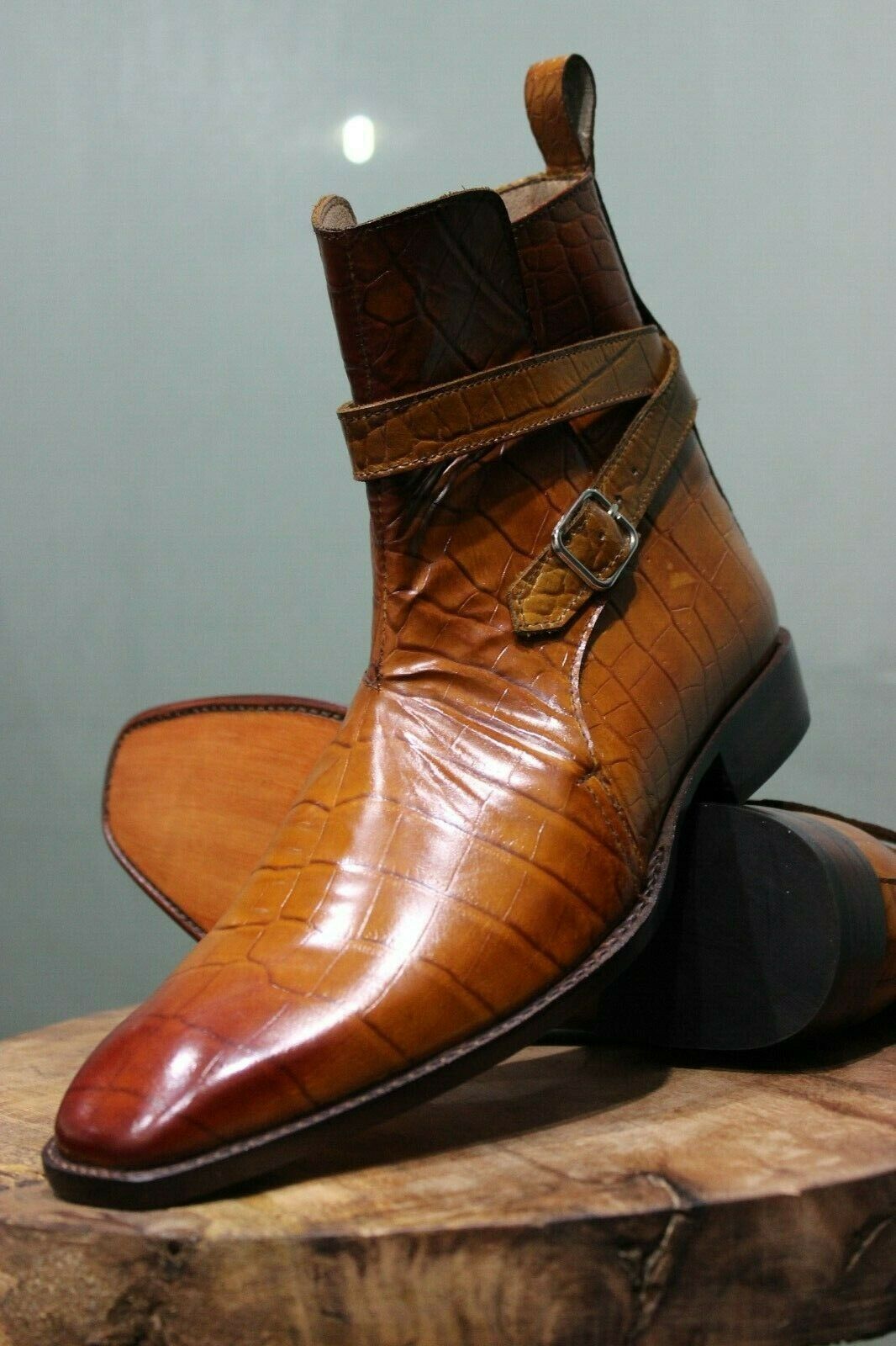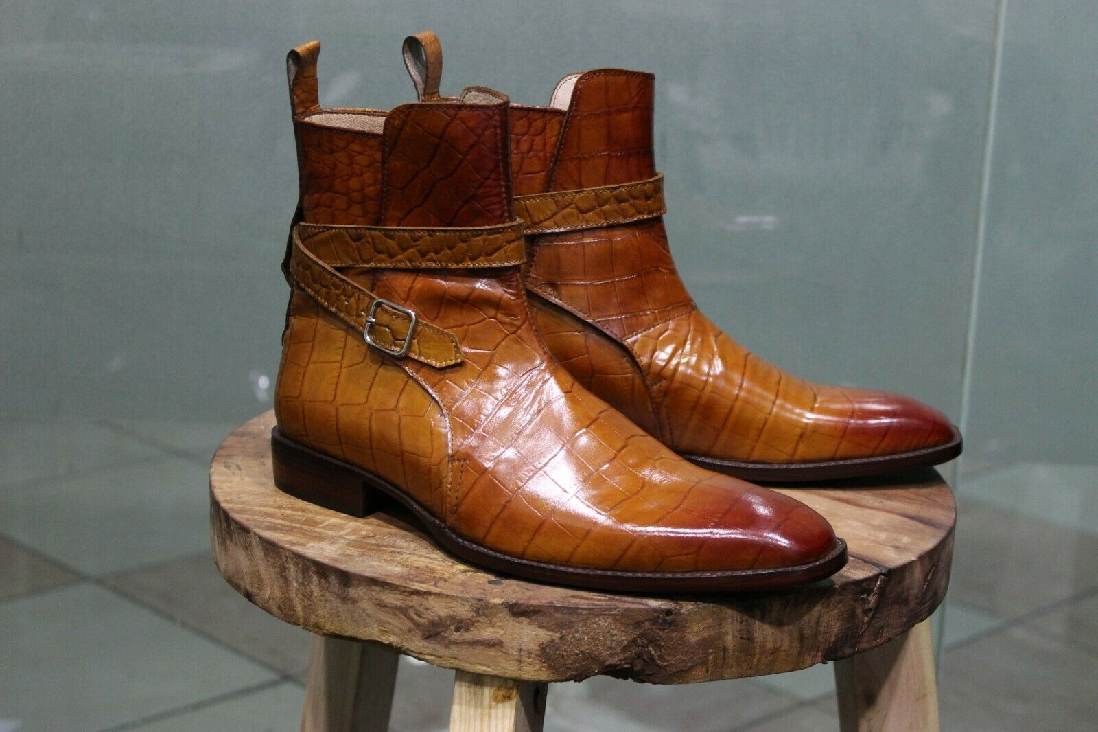Handmade Men Alligator skin Jodhpurs boot, Men Crocodile Texture casual boots