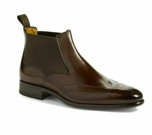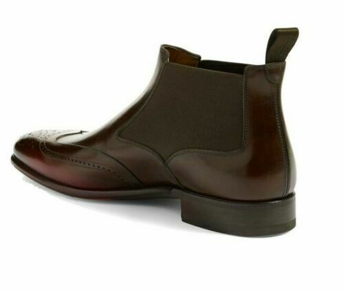 Brown Chelsea Boots Handmade Leather Boot Men's wing Toe Slip On Boot