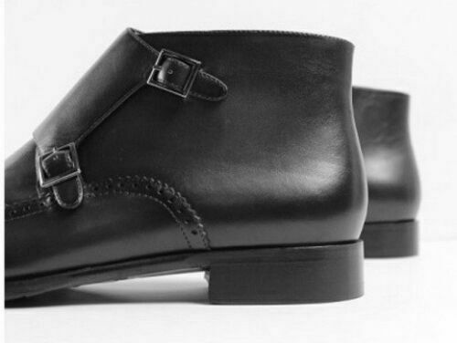 Mens Handmade Latest Double Monk Straps with Brogues Leather Boots, Men footwear