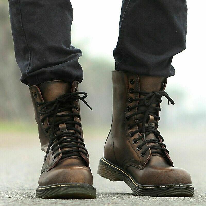 Brown Tone Rounded Toe Lace Up Vintage Genuine Leather Men High Ankle Boots