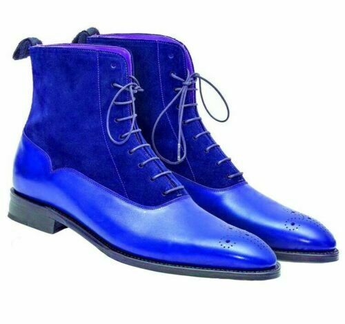 New Handmade Pure Blue Suede & Leather Ankle Boots for Men's