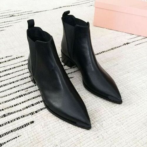 Handmade Men Black Pointed Toe Chelsea Boots, Men Black Leather Ankle Boots