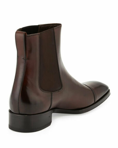 Handmade Men's brown Chelsea leather boot, Handcrafted brown formal ankle boot