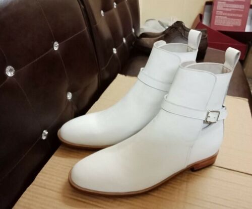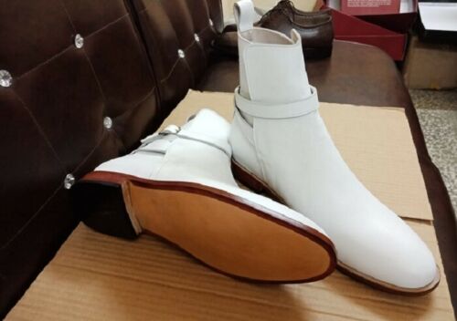 Handmade Men White Color Leather Jodhpurs boots, Men ankle boots, Mens boots