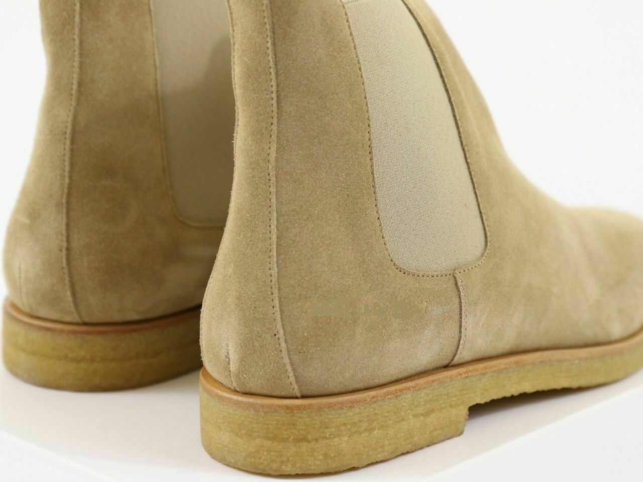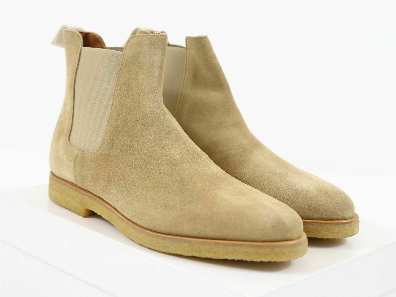 New Pure Handmade Custom Mens Beige Chelsea Suede Leather Boots in Thick Crepe