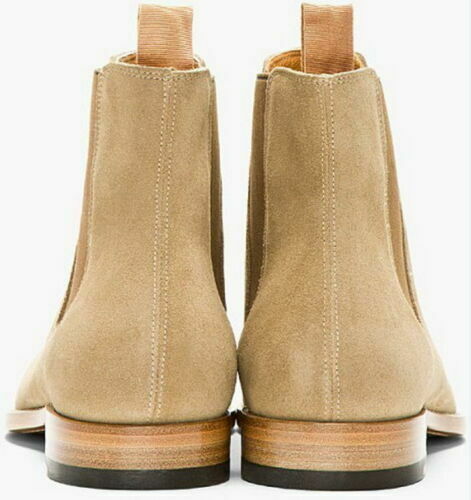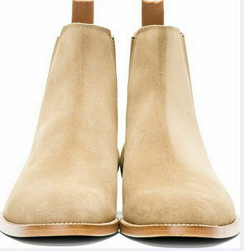 New Pure Handmade Custom Mens Beige Chelsea Suede Leather Boots in Leather Sole