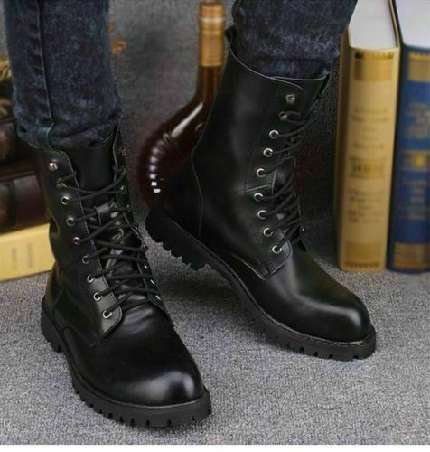 NEW-MEN HANDMADE LEATHER SHOES MILITARY STYLE COMBAT BLACK ANKLE HIGH BOOTS