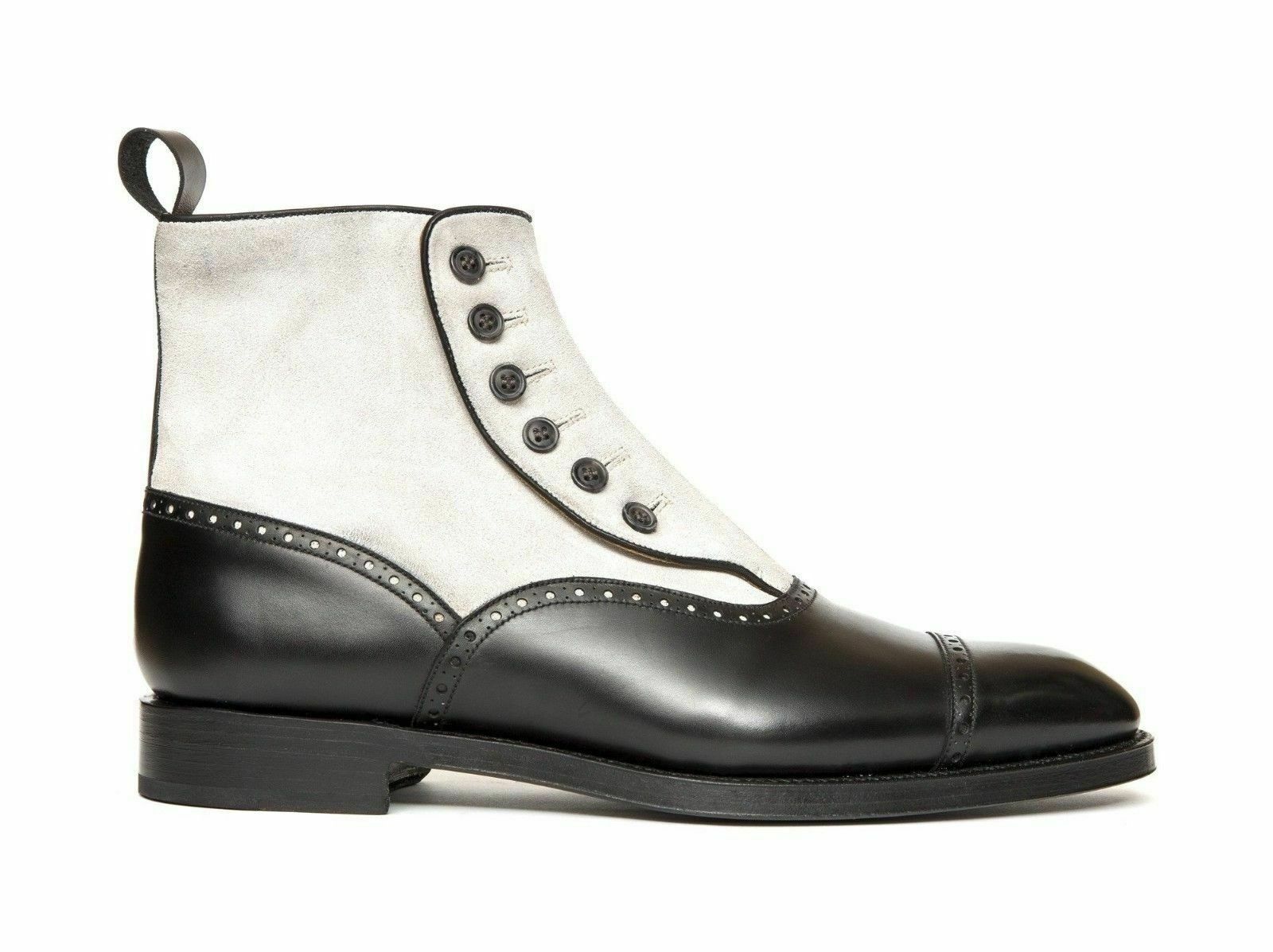 Button White Black High Ankle Customized Stylish Handcrafted Cap Toe Men Boots