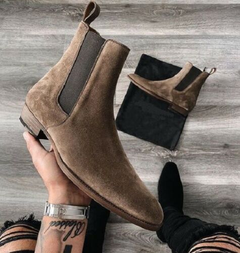 Handmade Mens brown Suede Chelsea Boots Mens Casual leather Ankle boots