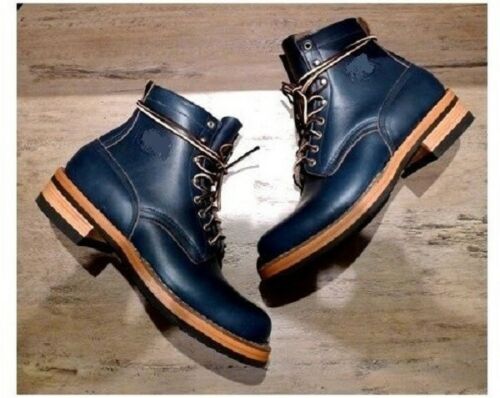 Handmade navy blue dress boots men lace up combat boots, leather formal boot men