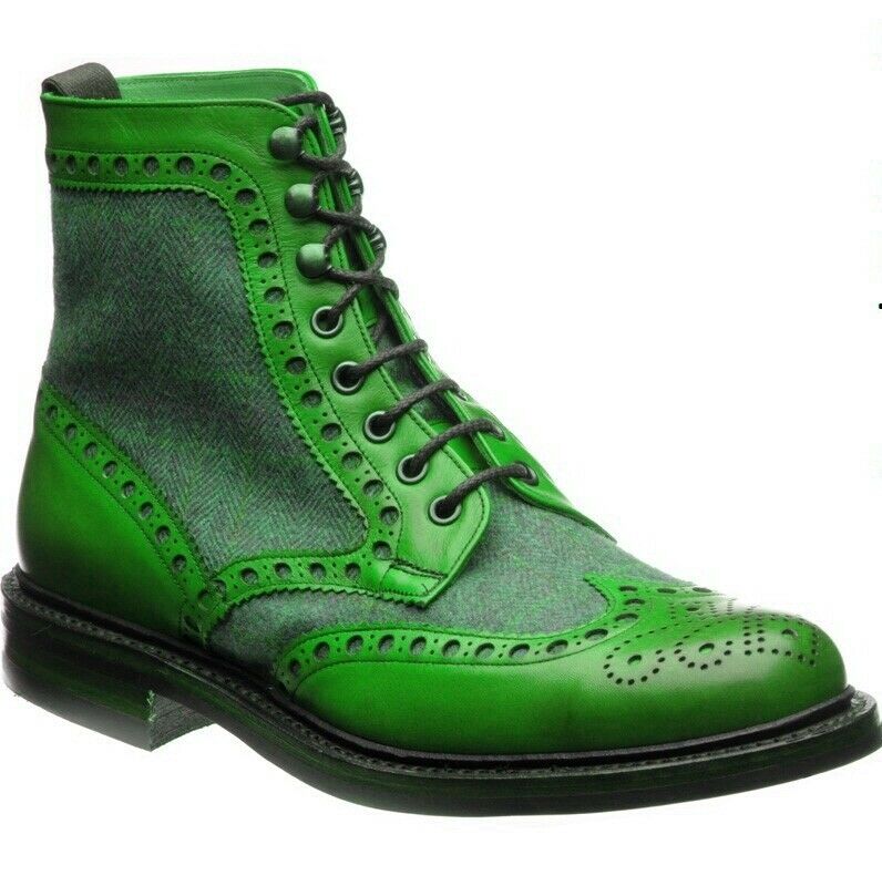 Handmade Bilbao Green Full Brogue Wingtip High Ankle Genuine Leather Men's Boots