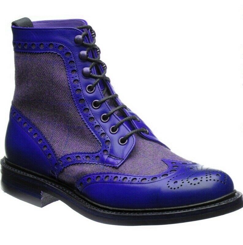 Customize Mid-Night Blue High Ankle Medallion Wingtip Pure Leather Men's Boots
