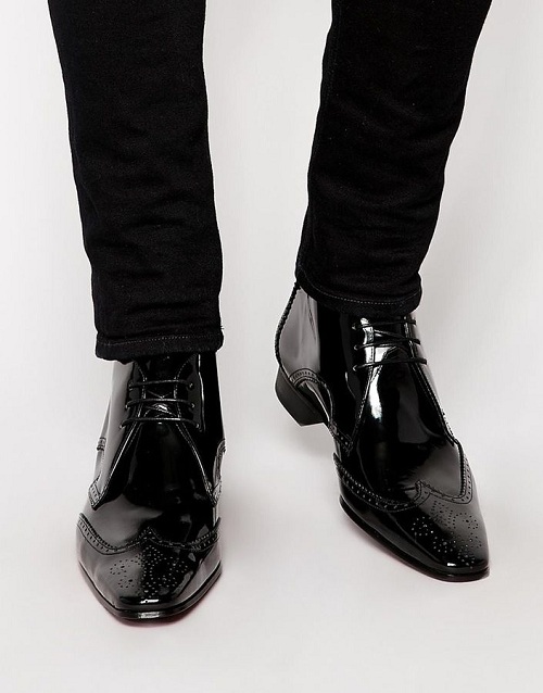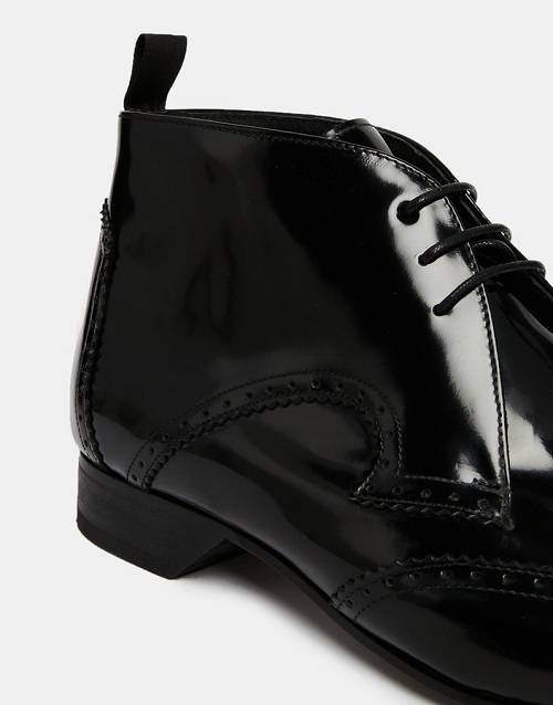 Handmade Men Black Brogue Oxford Lace up ankle boots, Men Black Patent Leather dress ankle high boots