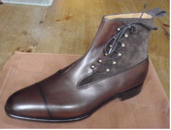 Handmade Men Brown Lace Up Ankle Boots, Mens Fashion Cap Toe Ankle Boots