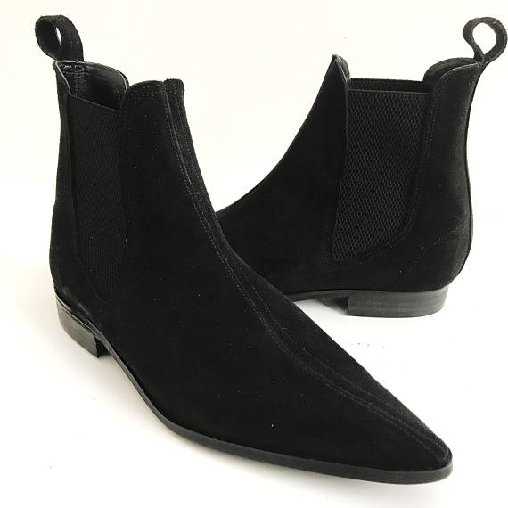 Handmade Men Black Color Suede Chelsea Boots Men Black Fashion Chelsea Boot