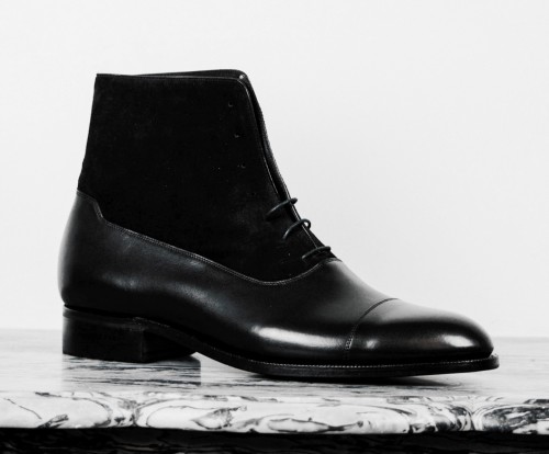 Handmade Men ankle Boots Men Black Lace Up Boot Men Ankle Leather cap toe Boot