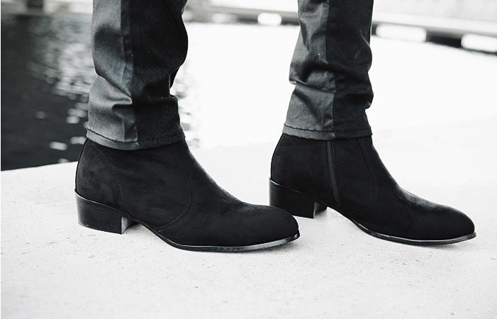 Handmade Men Black Side Zipper Boot, Men Black Suede Leather Boots