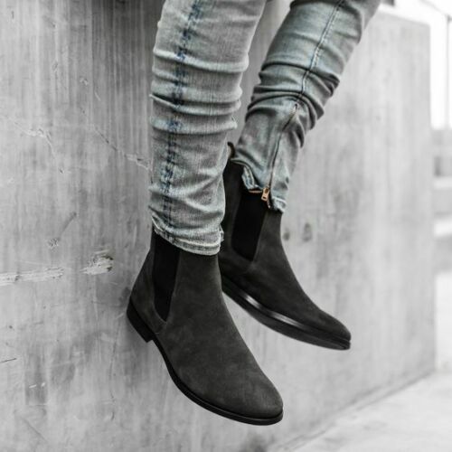 Handmade Men Charcoal color suede Chelsea boots, Men suede ankle high boots