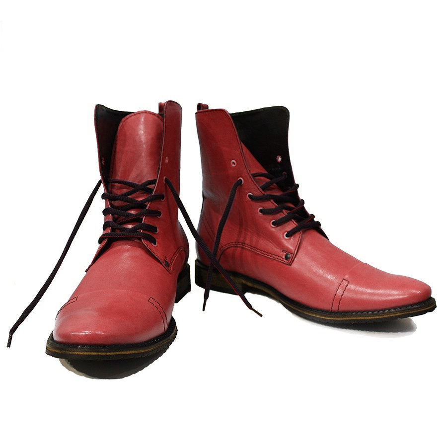 High Ankle Pink Color Cap Toe Handmade Genuine Leather Lace Up Stylish Men Boots