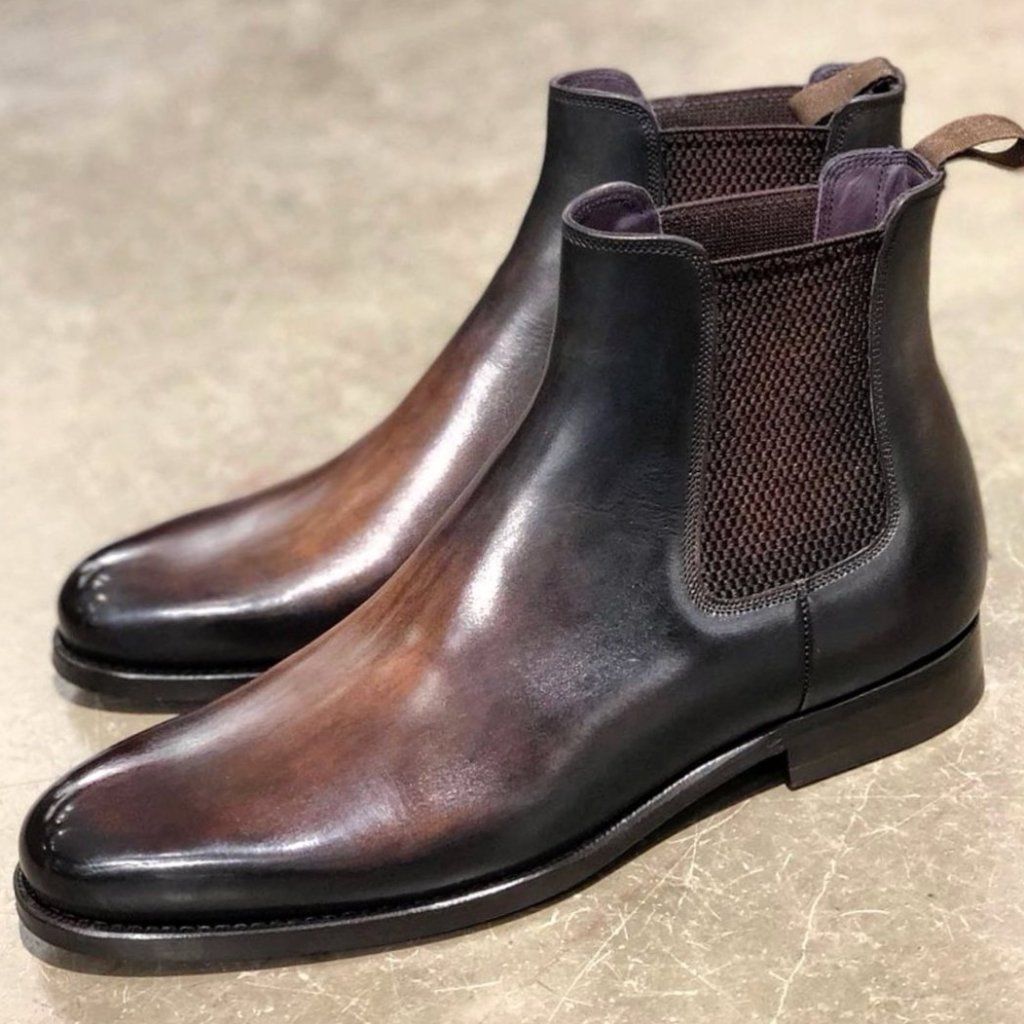 Handmade Leather Bro Patina Chelsea Boots Formal Men Shoes Custom Grade Boots