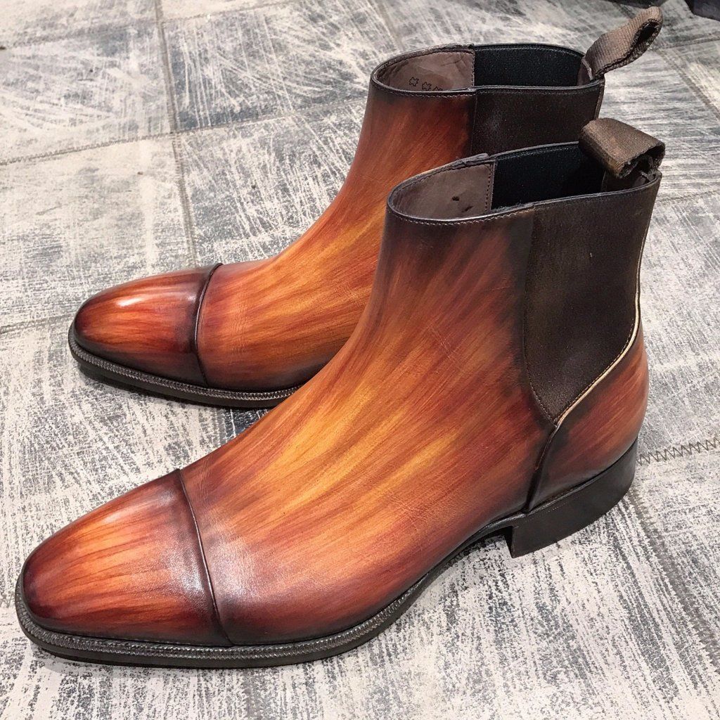 Handmade Leather Tan Patina Chelsea Boots Formal Men Shoes Custom Grade Boots