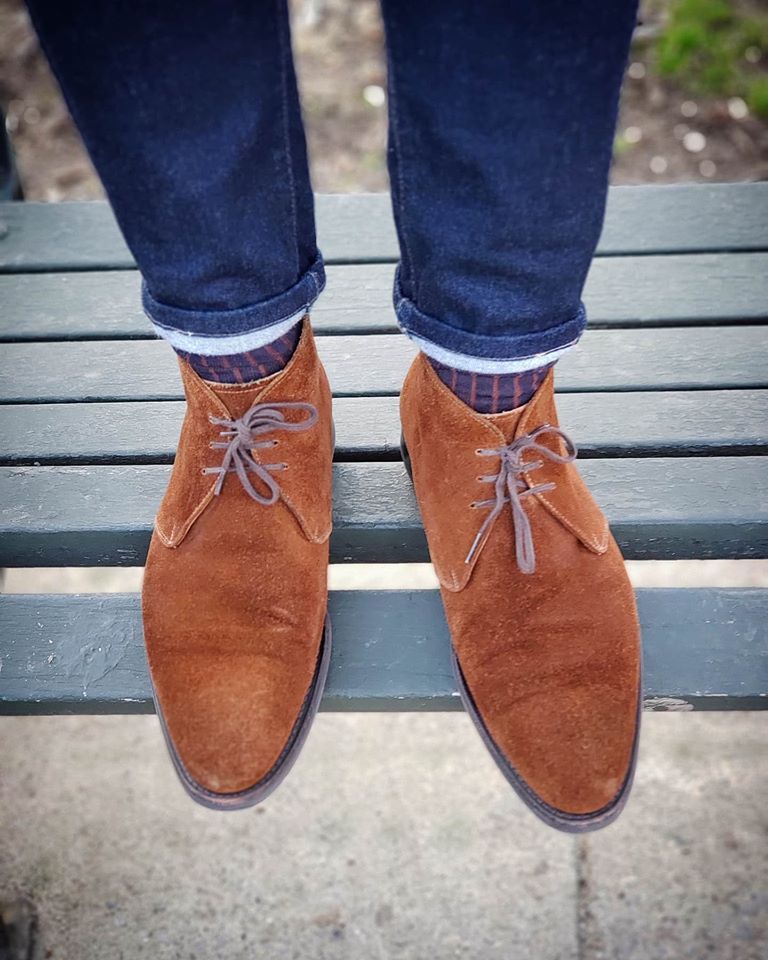 Handmade men's brown chukka ankle high leather dress formal custom made boots