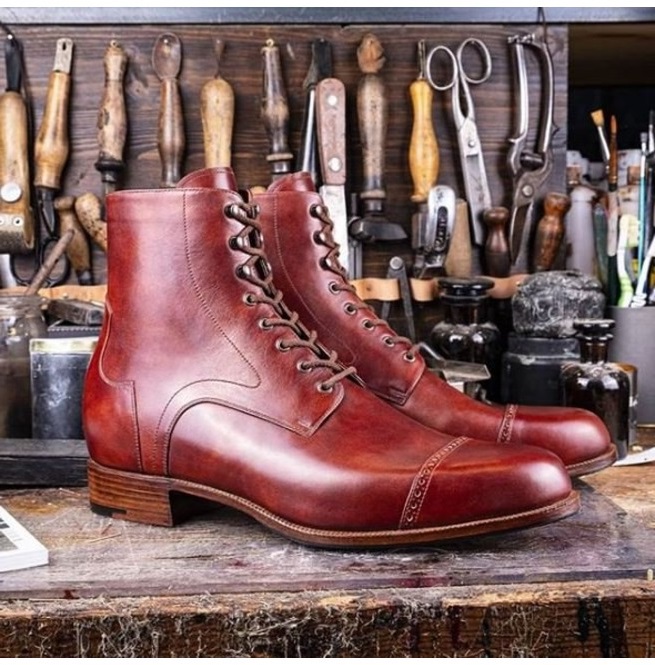 Handmade Men Red Brogue Chukka Lace up High Ankle Dress Boots, Real Leather