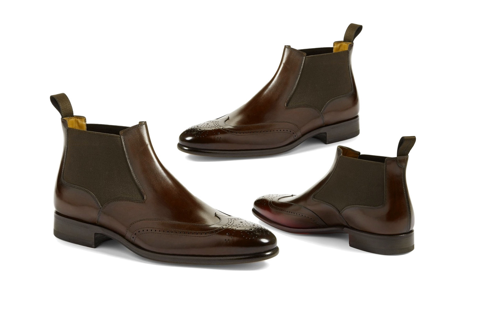 Men's Handmade Fashion wing Tip Brogue Leather Boots, Men Brown Chelsea Boots