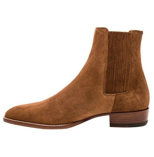 Handmade Mens Tan brown Suede Chelsea boots, Men suede ankle boots, Mens boots