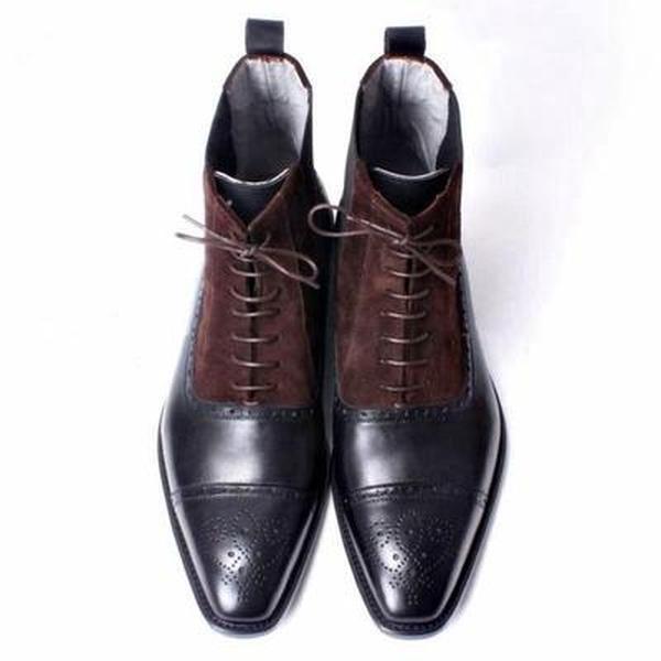 Men's Handmade Brown Leather Suede Lace Up Boots, Men Cap Toe Brogue Dress Boots