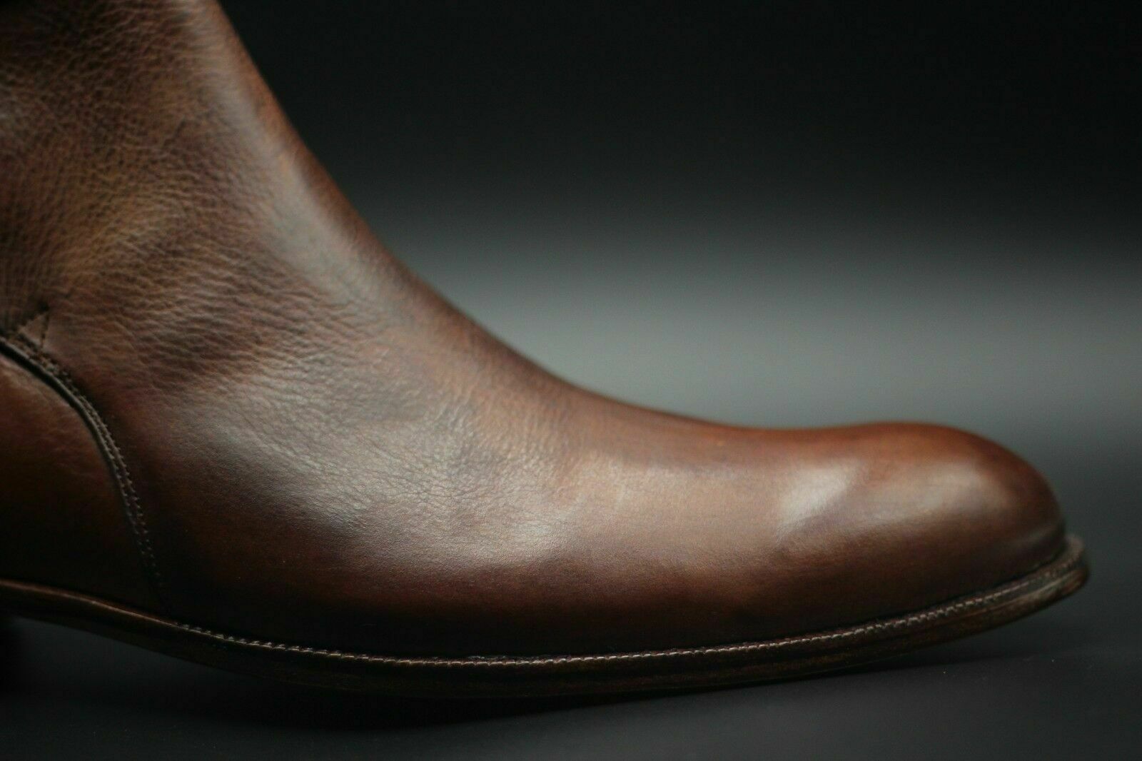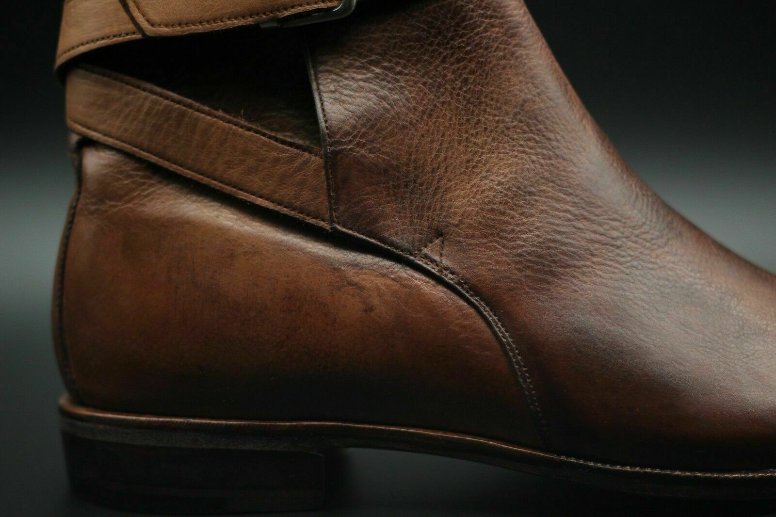 Made to Order Genuine Brown Leather Ankle Buckle Strap Formal Boots