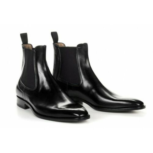 Men's Shiny Color Black Chelsea Jumper Slip On High Ankle Superior Leather Boots