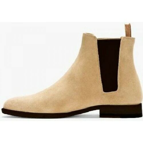 Men's Beige Color Chelsea Jumper Slip On Genuine Suede Leather High Ankle Boots