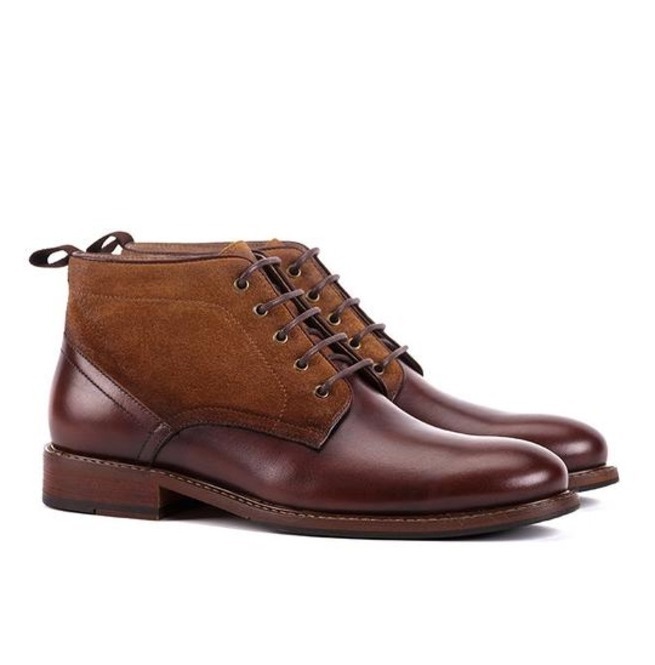 Handmade Men’s Brogue Ankle High Boot,Tan Brown Leather & Suede LaceUp Boot