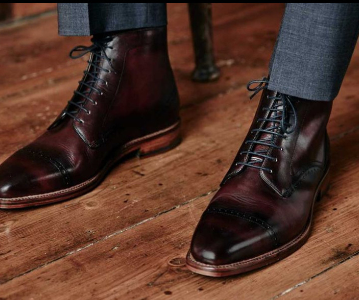 Formal Wear Men Cap Toe Boot Dark Brown Leather Lace Up Ankle Handmade Boot