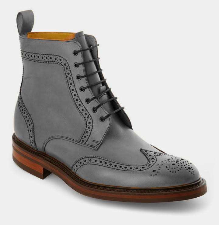 Men Gray Leather Wing Tip High Ankle Casual Lace Up Boot