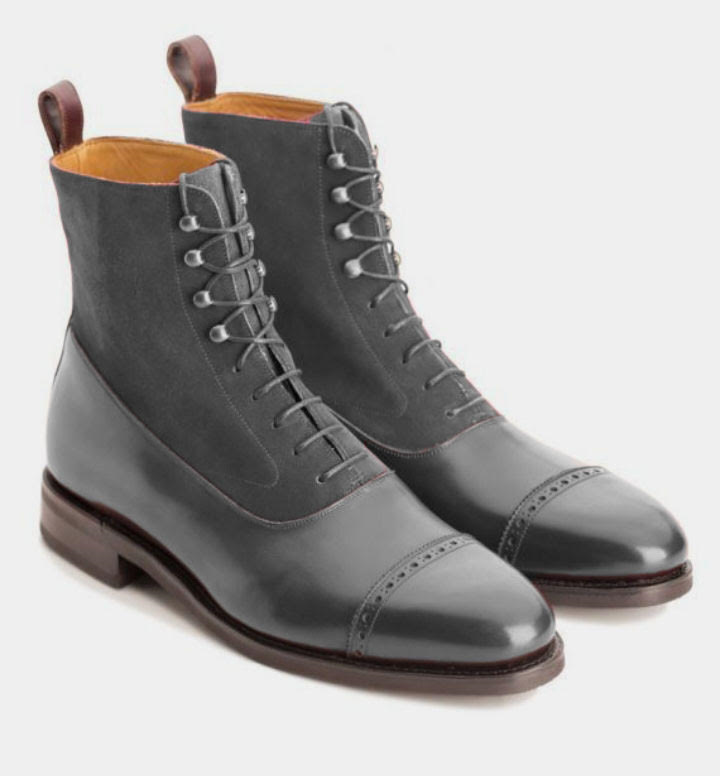 Men Black Suede Black Leather Oxford Cap Toe HIgh Ankle Boot
